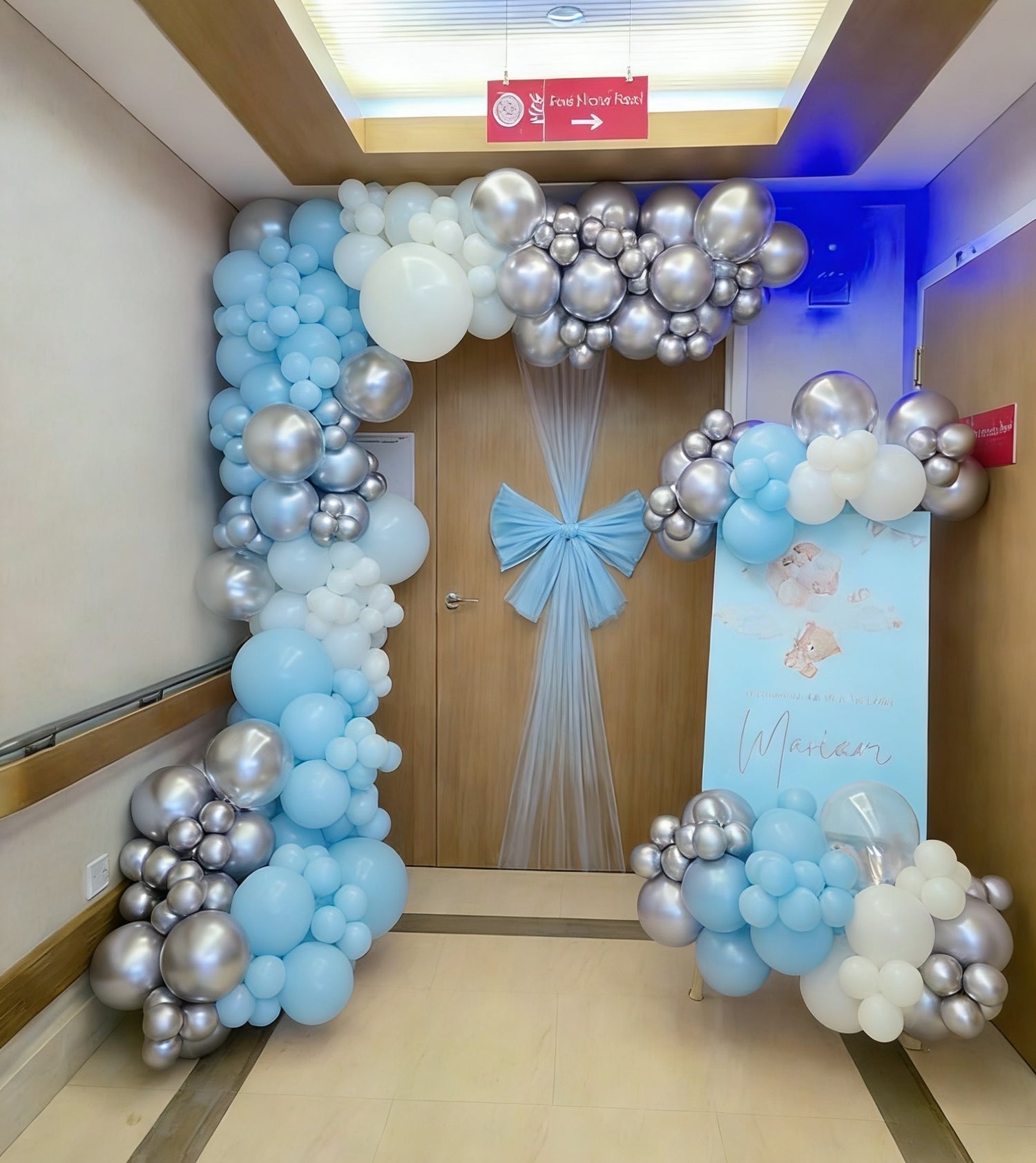 Hospital or Home Welcoming Baby Balloon White Blue with Door Fabric Ribbon Decoration - Perfect for special occasions