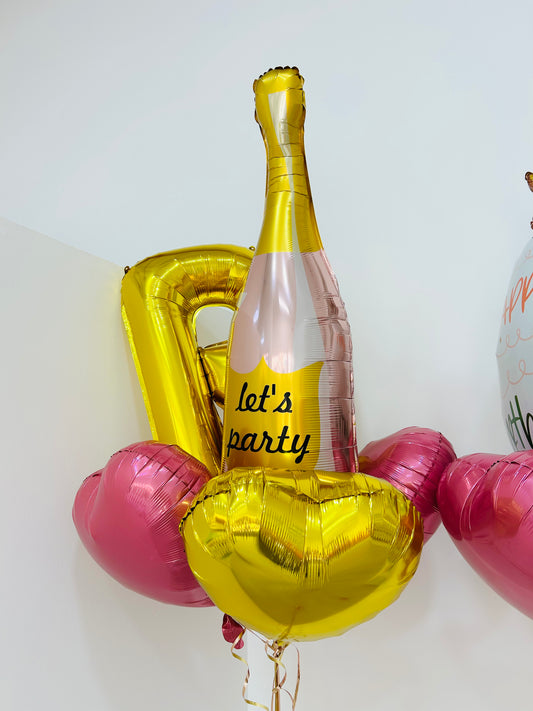 Helium Gold Single Letter Set Balloon with 'Happy Birthday' Foil Balloon, 'Champagne' Foil Balloon and Foil Star Balloons Accents