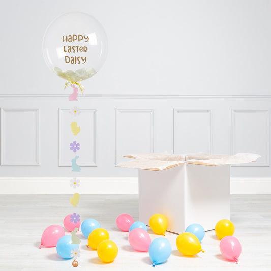Personalised Helium Balloon Birthday Bubble Balloon with Green and Gold Balloons & Tassel Tail with Helium - Perfect for Celebrations