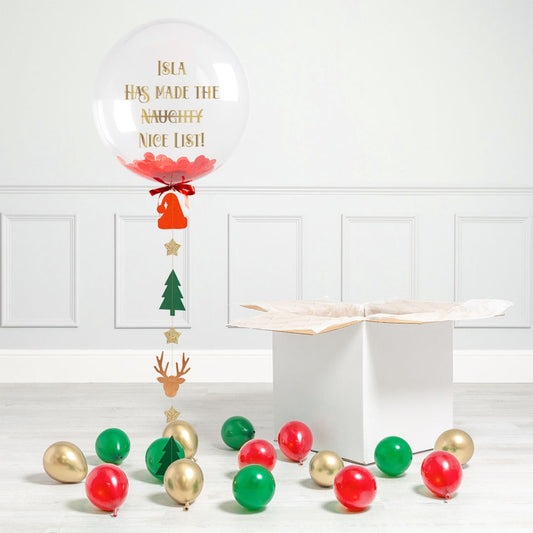 Personalised Helium Balloon Christmas Santa's Nice List Christmas Helium Bubble Balloon Elevate Your Celebration with Our Stunning Helium Bubble Balloon Bouquet