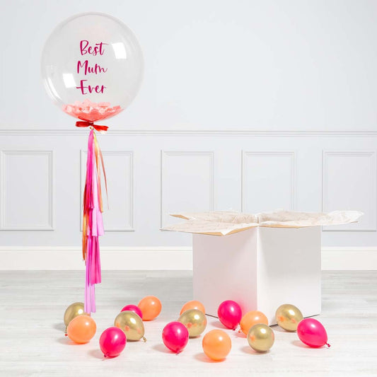 Personalised Helium Balloon Bright Pink Tassel Mother’s Day Best Mom Confetti Helium Bubble Balloon Elevate Your Celebration with Our Stunning Helium Bubble Balloon Bouquet
