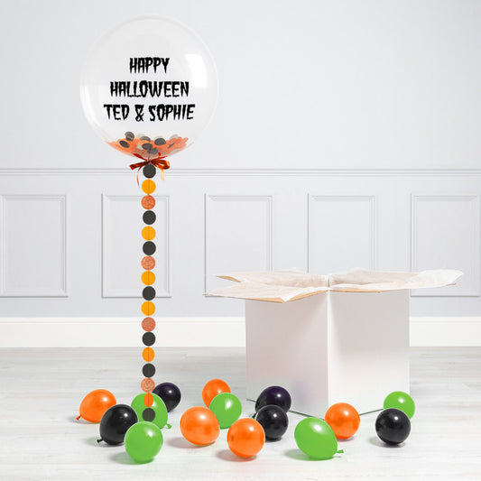 Personalised Helium Balloon Halloween Circles Confetti Helium Bubble Balloon Elevate Your Celebration with Our Stunning Helium Bubble Balloon Bouquet