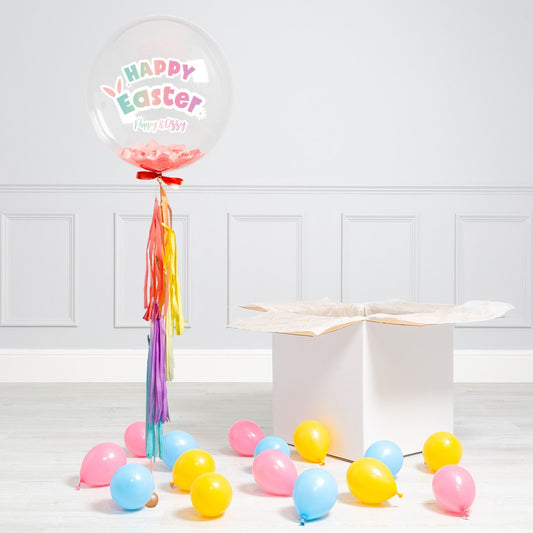Personalised Helium Balloon Happy Easter Pastel Rainbow Ombre Confetti Helium Bubble Balloon Elevate Your Celebration with Our Stunning Helium Bubble Balloon Bouquet