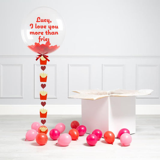 Personalised Helium Balloon Love Fries Valentine’s Day Helium Bubble Balloon Elevate Your Celebration with Our Stunning Helium Bubble Balloon Bouquet