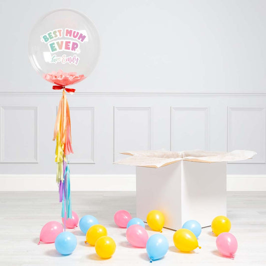 Personalised Helium Balloon Pastel Best Mom Mother’s Day Confetti Helium Bubble Balloon Elevate Your Celebration with Our Stunning Helium Bubble Balloon Bouquet