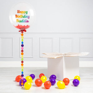 Personalised Helium Balloon Rainbow Circle Confetti Helium Bubble Balloon Elevate Your Celebration with Our Stunning Helium Bubble Balloon Bouquet