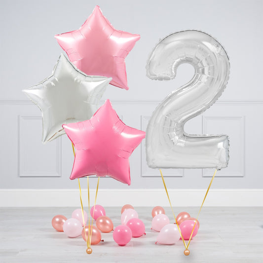 Helium Clear Single Set Balloon - Light Pink, Dark Pink and White Star with Mini Balloons