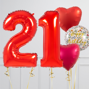 Helium Red ‘21’ Two Number Set Balloon with Circle and Red Color Way Heart-Shaped Foil Balloons