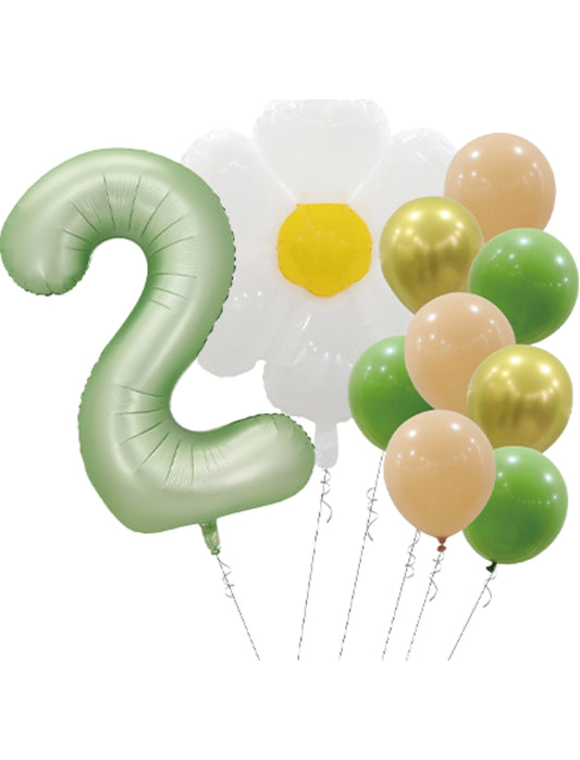 Helium Green Single Number Set Balloons with Flower and Latex Balloons