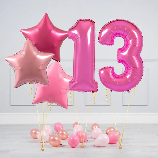 Helium Dark Pink Two Number Set Balloon with Different Shade of Pink and Mini Balloons