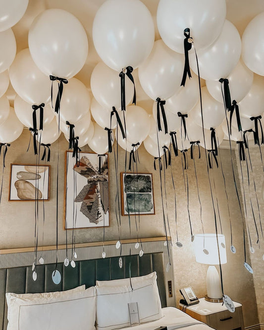Ceiling Helium White Latex Balloon with Black Ribbons - Perfect for any special occasions!