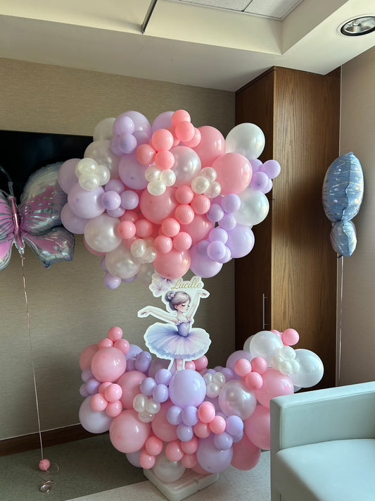 Hospital Setup Customized Ballerina with Balloons Purple, Pink and Pearl White and Helium Butterfly - Perfect for special occasion
