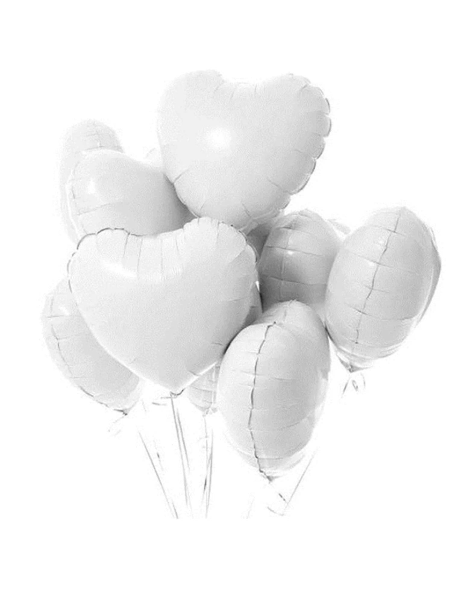 8 pcs White Heart Valentine's Day Set Thank You Helium Balloon Bouquet White