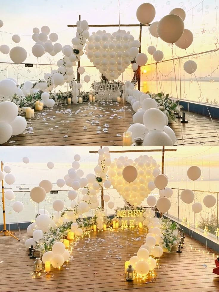 Artificial Flowers and Petals, Candles, LED Marquee ' MARRY ME', Designed White Heart Balloons and Helium Balloons - Perfect for Proposal, Wedding, Anniversary special occasions!