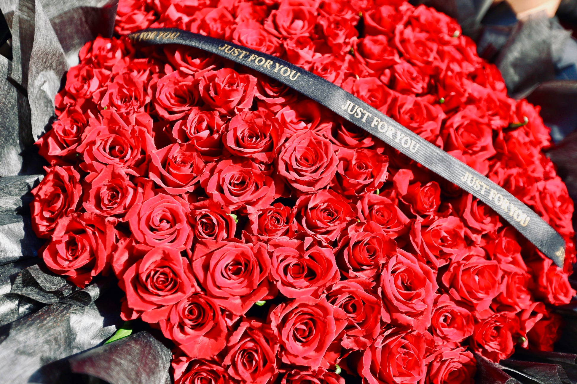 - Giant bouquet of fresh red roses for the perfect finishing touch