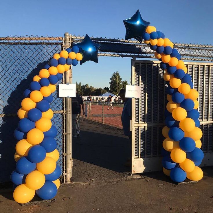 Balloon Blue and Yellow with Stars Foil accents Pillar/Column/Tower - Corporate Event, Grand Opening, Company Event Perfect for special occasion!