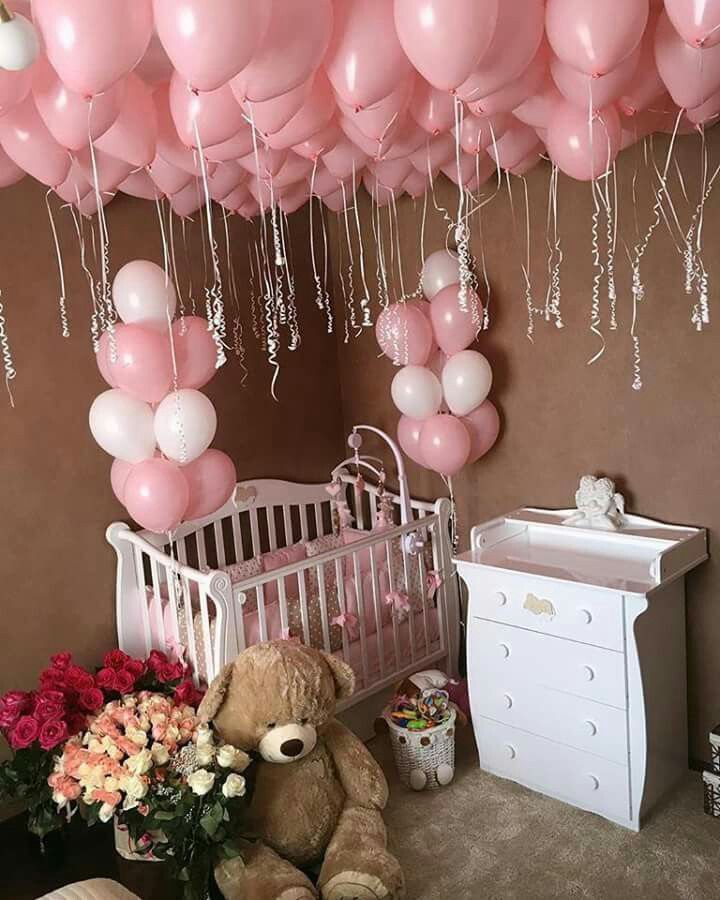 Set Decor Helium Balloon Pink and White Ceiling and Latex Bunch - Perfect for Welcoming Baby!