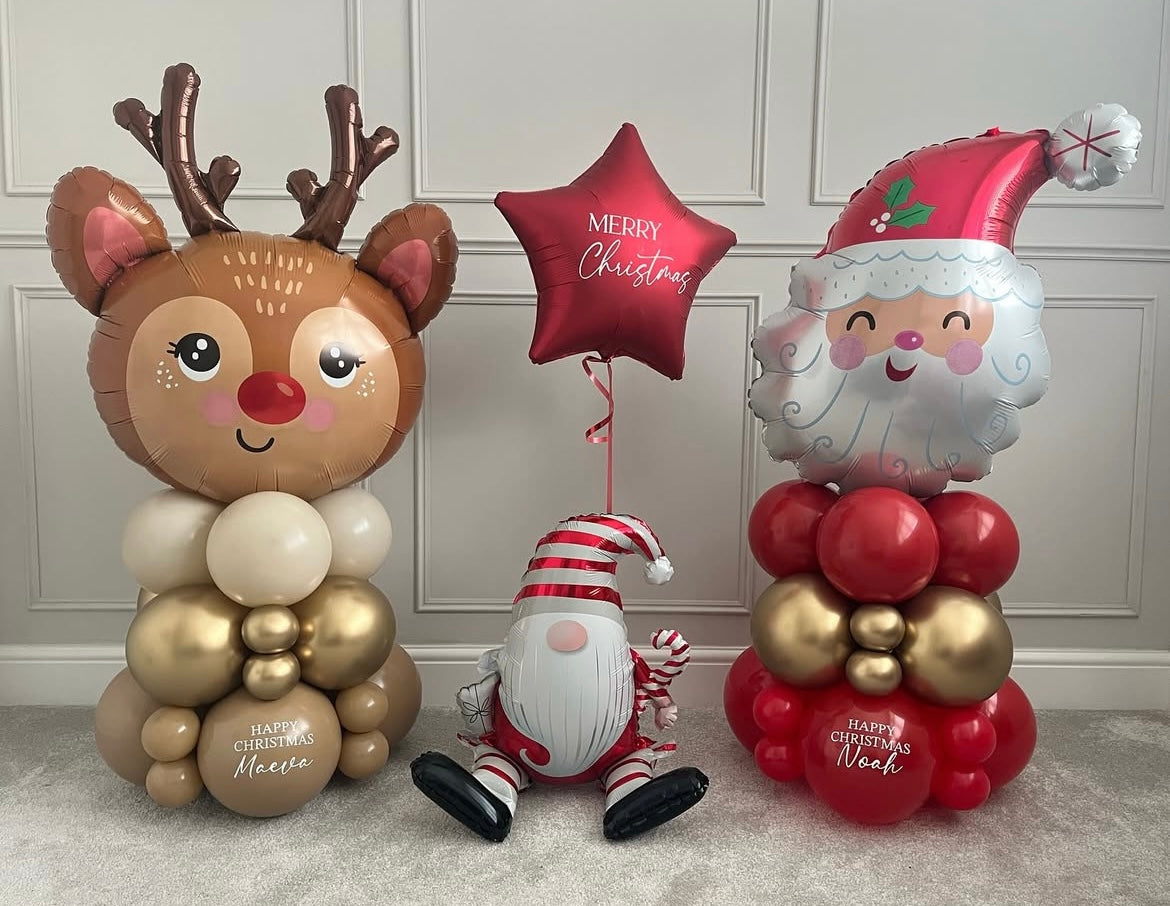 Balloon on Stand Christmas Dear Santa with Latex Brown, Light Gold, Red and Beige and Helium Star with Customize Sticker – Christmas Customizable Design