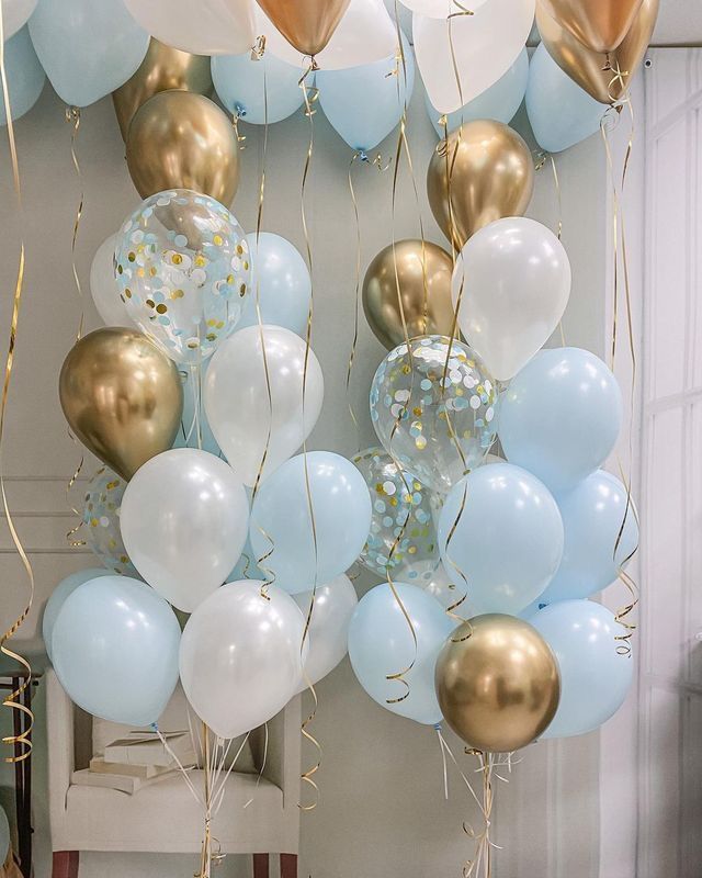 Ceiling and Bunch Helium Balloon White, Blue, Light Gold and Clear with Confetti - Baby Shower, Gender Reveal, Birthday Perfect for Special Occasions!