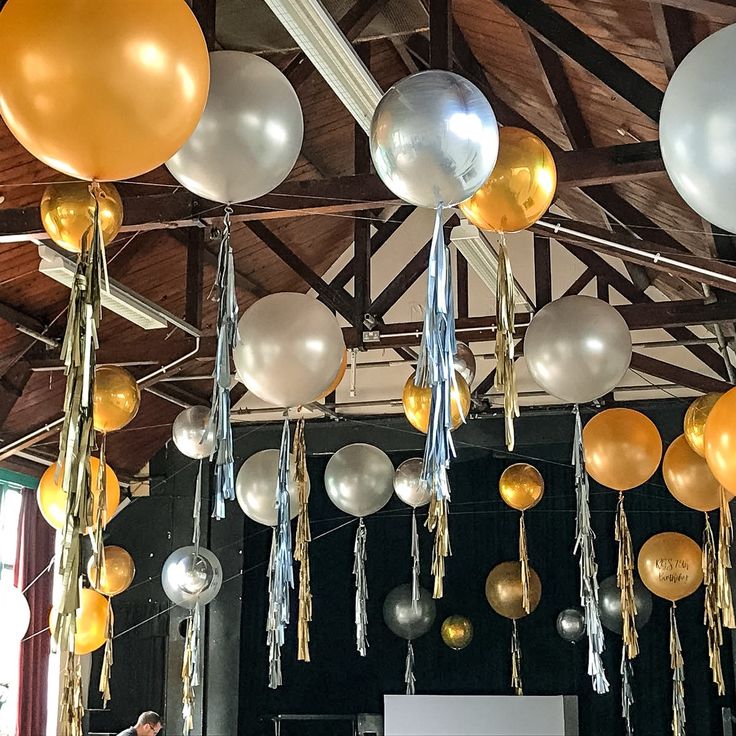 Ceiling Orbs Helium Balloons Gray, Orange, Gold and Silver 32-inches with Tassels - Perfect for Special Occasions!