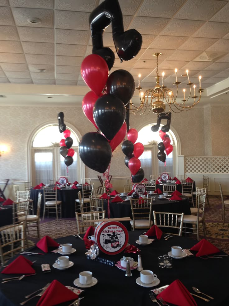 Centerpieces Helium Latex Balloon Red and Black with Music Notes - Perfect for special occasions!