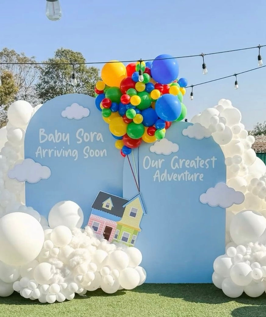 Customizable Board Backdrop and Balloon Blue, Green, Red, Yellow and White Setup - Up-Themed Perfect for Birthday, Baby Shower and special occasions