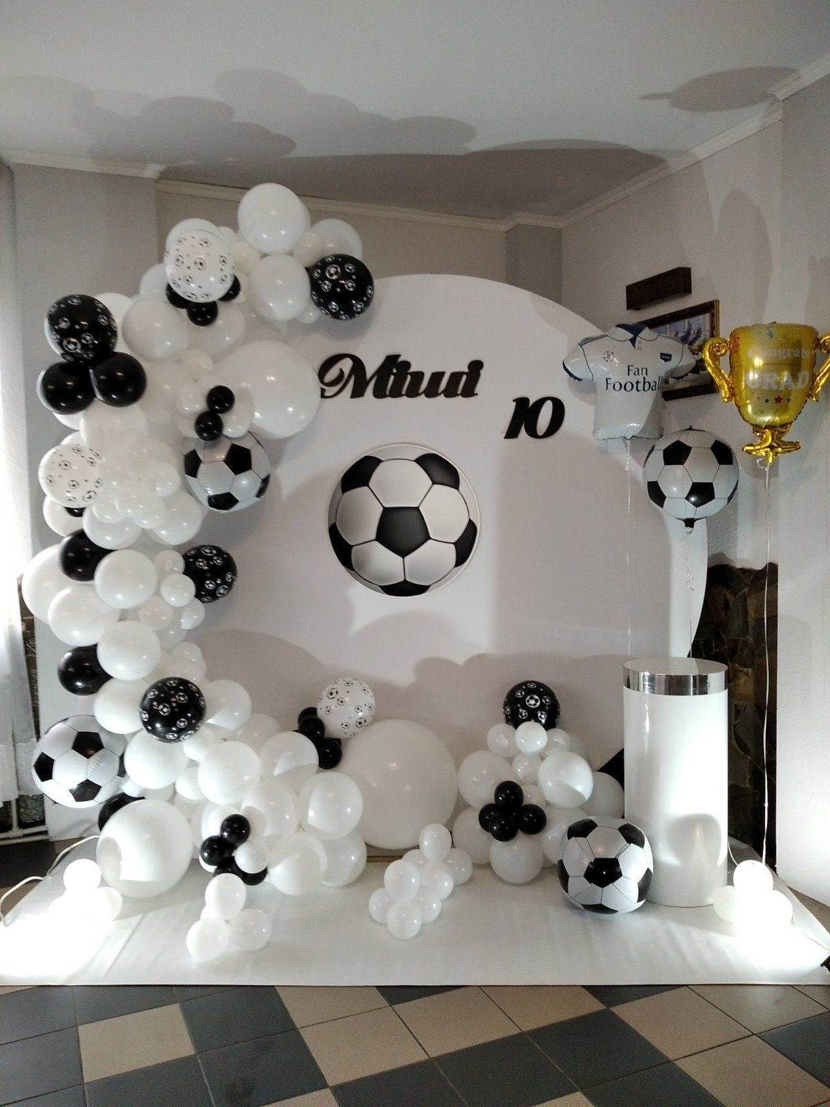 Customizable Board Backdrop with Balloon Soccer Ball White and Champion, Soccer Ball and Player Shirt Foil Heliums - Football Sport-Themed Perfect for special occasions