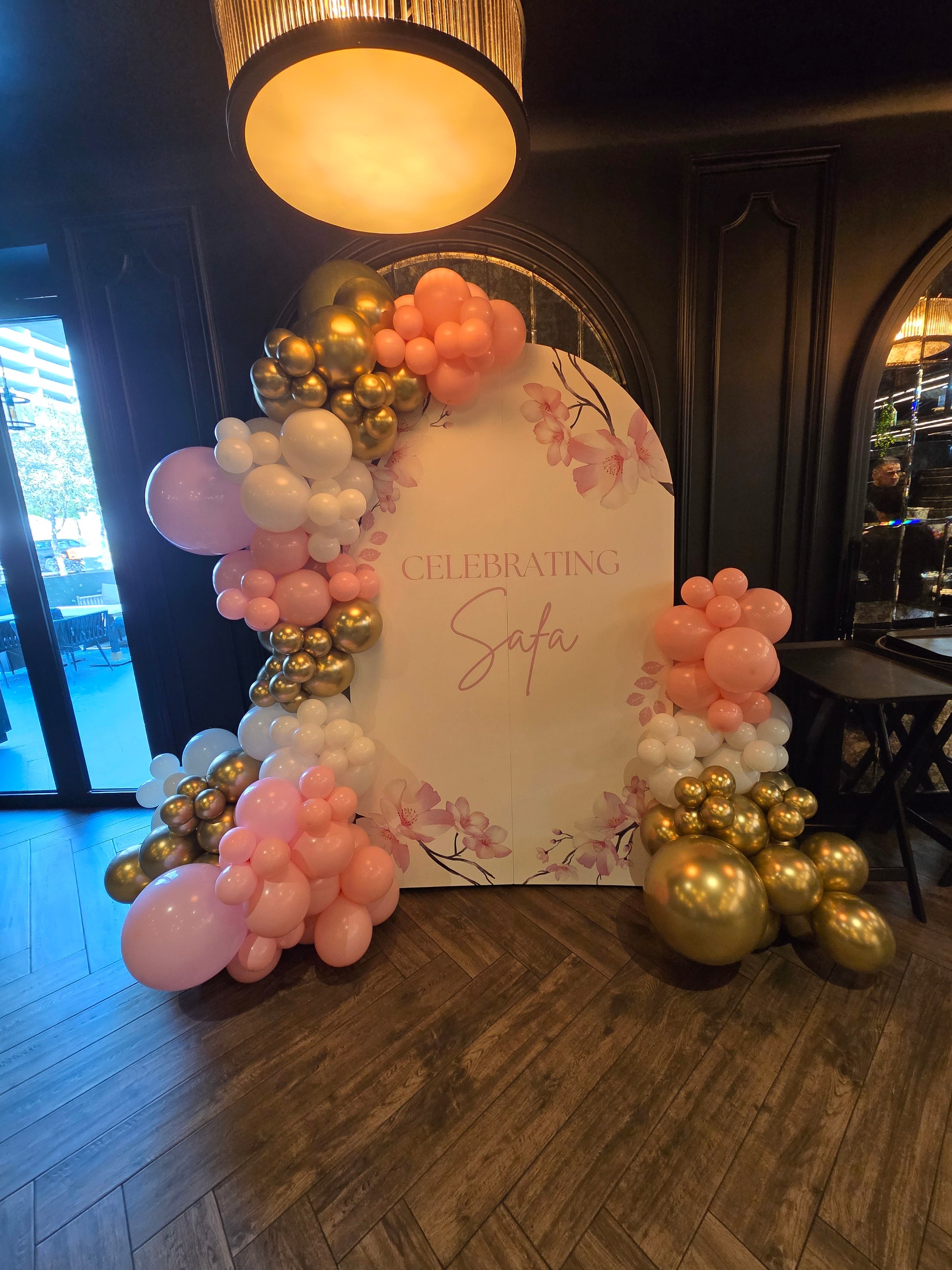 Customizable Printed Backdrop with Balloon Pink Light Gold Garland - Customizable Design, Perfect for any occasions!