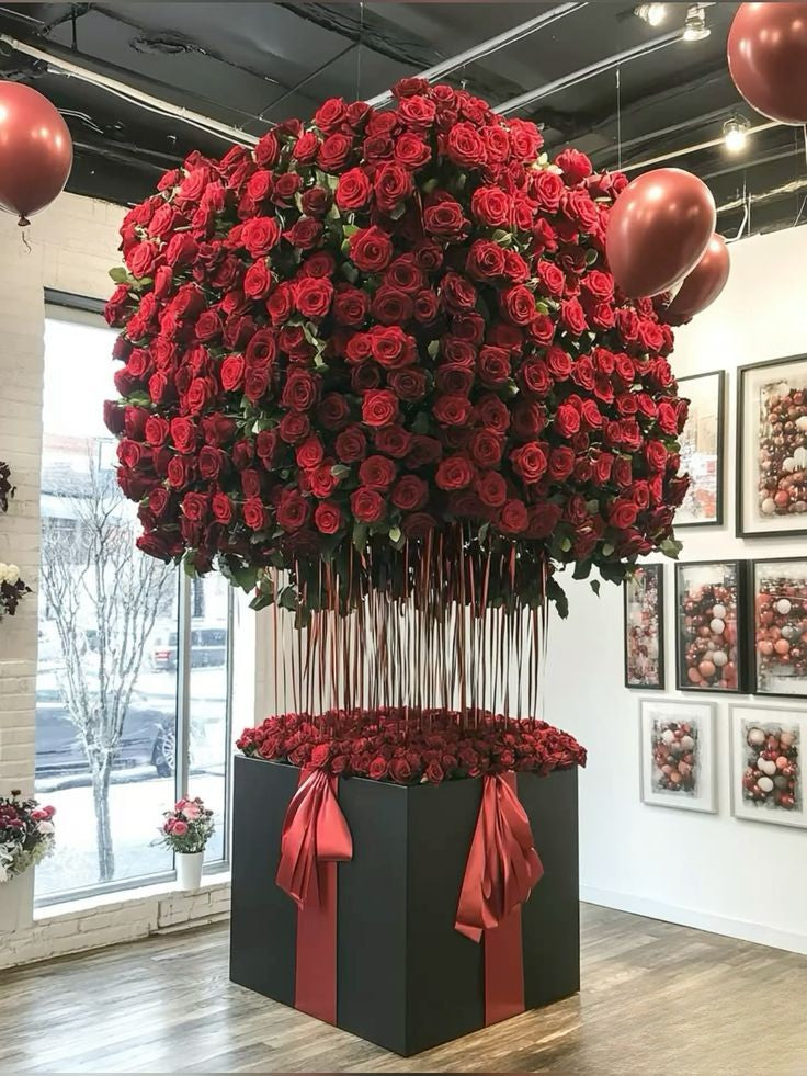 Customize Red Roses with Set of Helium Balloons - Floral Fresh