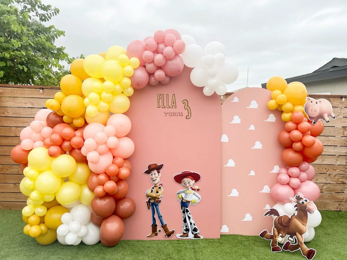 Full Set Customizable Board Backdrop with Balloon White, Pink, Yellow and Brown with Toy Story Characters Standee - Toy Story-Themed Perfect for special occasions
