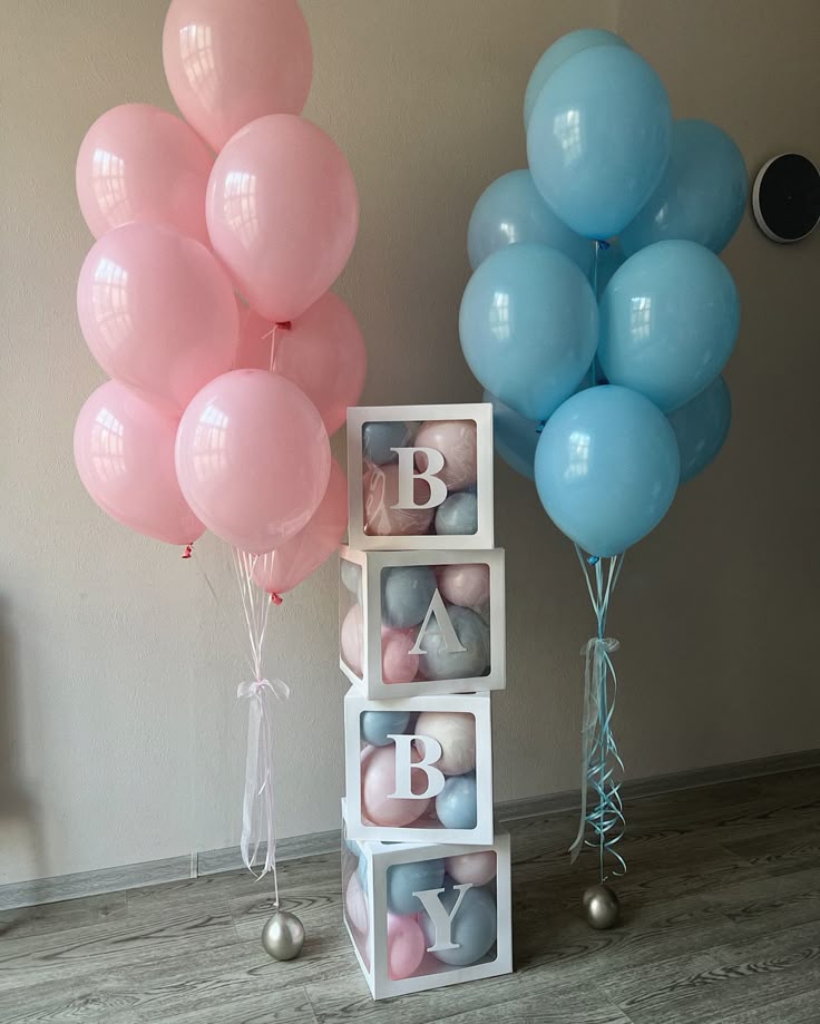 Gender Reveal Balloon Helium Latex Bunch Blue and Pink with BABY Box with Mini Latex Balloons - Customizable Design