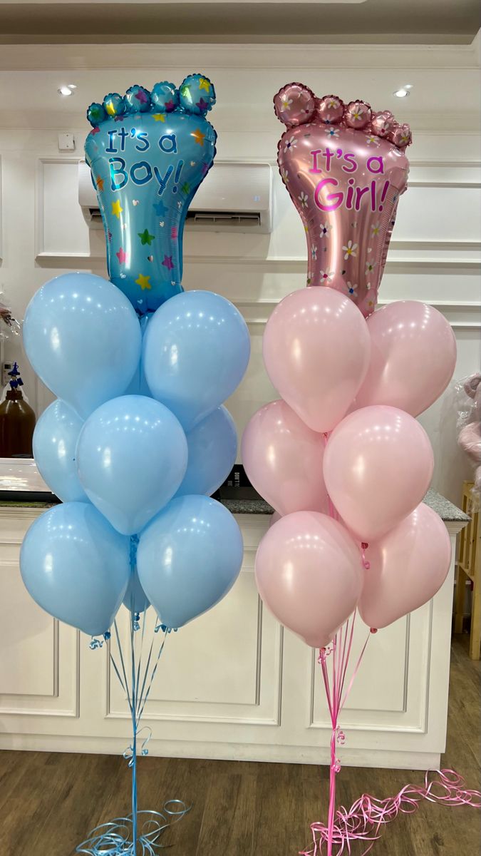 Gender Reveal Balloon Helium Latex Bunch Blue and Pink with 'It's a Girl' 'It's a Boy' Foil, Blue and Pink Ribbons - Customizable Design