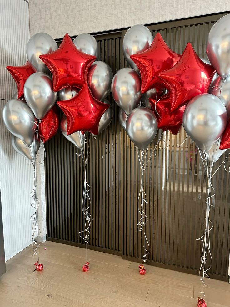 Helium Balloons Bunch Red Star-Shaped and Silver Latex with Silver Strings - Perfect for any Occasions