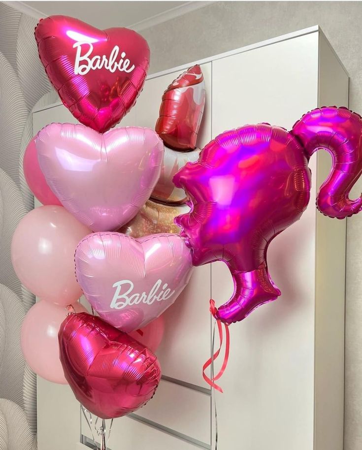 Helium Balloons Different Shades of Pink Heart-Shaped with 'Barbie' Sticker and Latex Bunch with Barbie Character and Lipstick Foil - Barbie-Themed Perfect for any Occasions