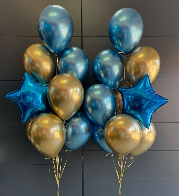 Helium Balloons Foil Blue Star-Shaped with Latex Chrome Blue and Light Gold Bunch - Perfect for any Occasions!