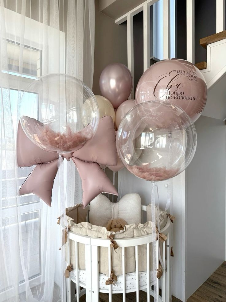 Helium Balloons Personalised Clear with Feather, Clear with Pink Latex and Customize Sticker, Latex Bunch Pink and Beige with Pink Ribbon Foil with Ribbons - Customizable Decor