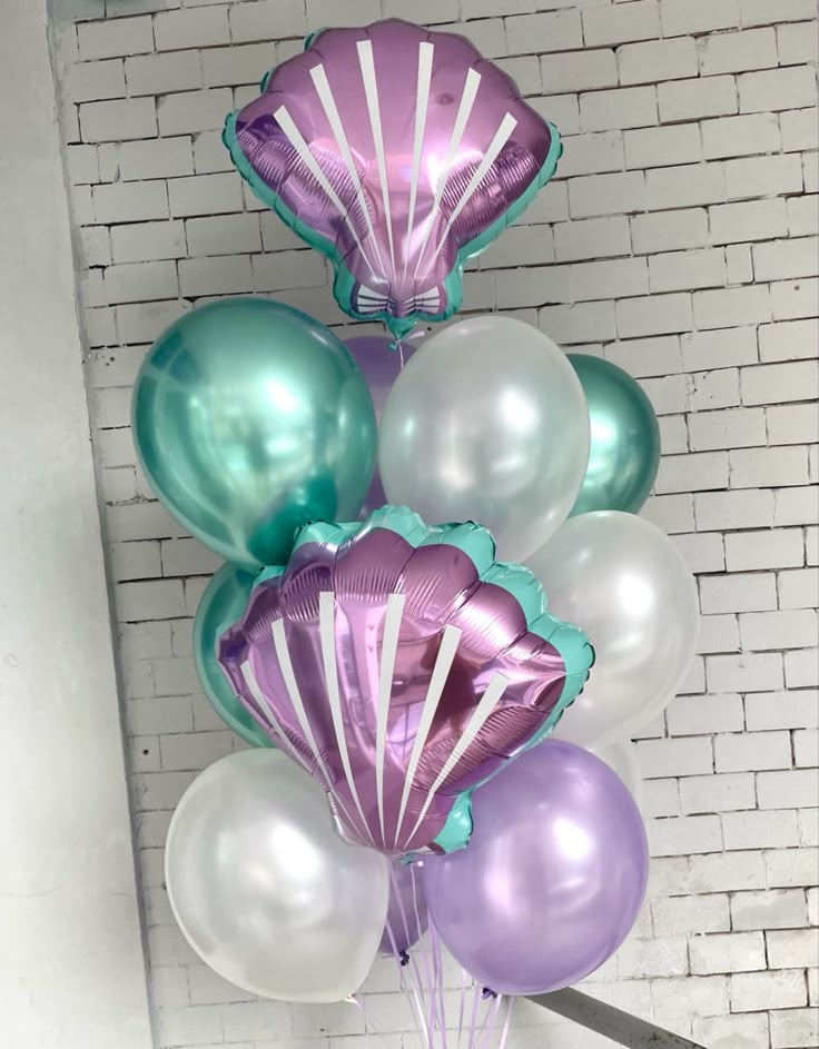Helium Balloons Shell Foil with Latex Purple, Chrome Green and Pearl White Bunch - Mermaid-Themed Under The Sea-Themed Perfect for any Occasions!