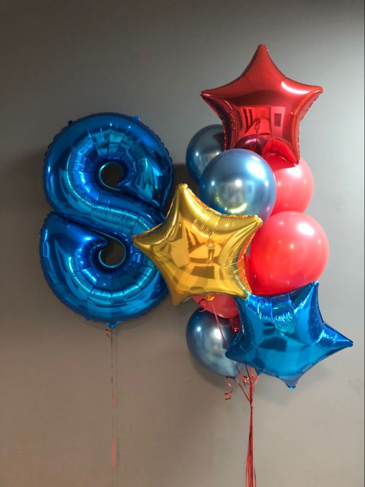 Helium Balloons Single Number Set Blue '8' and Latex Bunch Chrome Blue and Red and Star-Shaped Foil - Perfect for any Occasions!