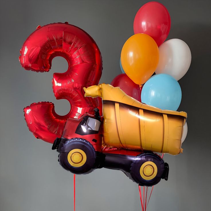 Helium Balloons Single Number Set Red '3' and Latex Bunch Orange, Red, White and Blue with Foil Truck Balloon - Perfect for any Occasions!