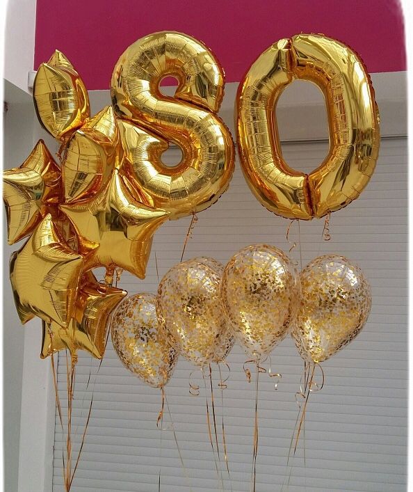 Helium Balloons Two Number Set Gold '80' and Latex Clear with Confetti and Star-Shaped Foil Bunch - Perfect for any Occasions!