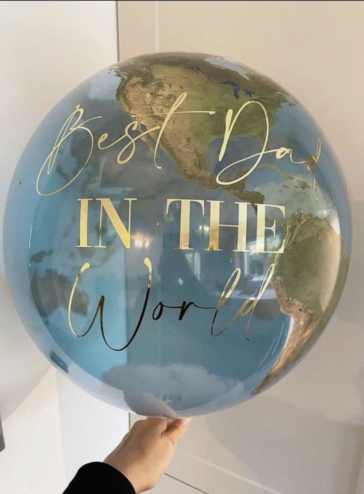 Helium Balloons World with Customize Sticker with Ribbons - Customizable Decor