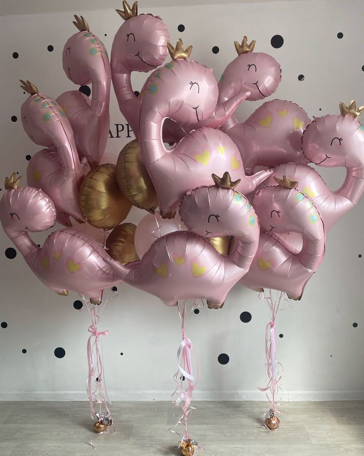 Helium Foil Balloons Pink Dinosaur with Crown and Circle Gold - Dinosaur-Themed Safari and Jungle-Themed Perfect for special occasions!