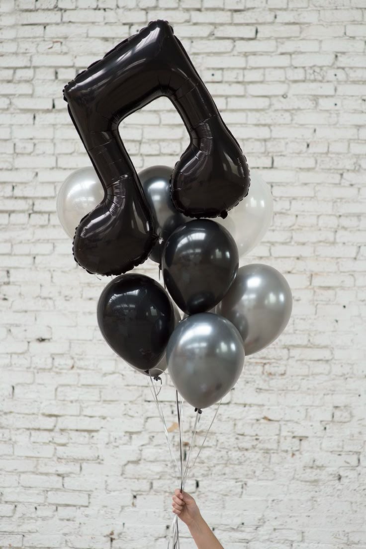 Helium Latex Balloon Silver, Gray, White and Black with Music Notes Bunch - Perfect for special occasions!