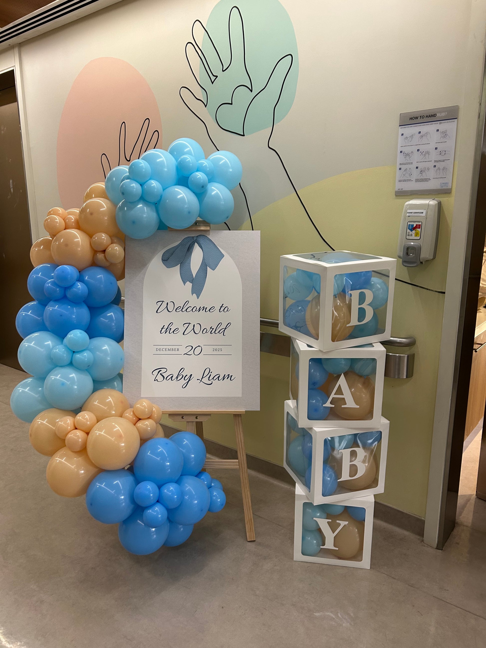 Hospital Setup Baby Shower Balloon Blue and Nude with BABY Box with Mini Balloons and Customizable KT Board Decor Setup - Perfect for special occasions