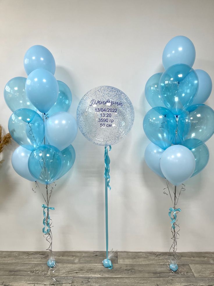 Personalised Clear with Confetti and Customize Sticker, Bunch Helium Balloon Different Shades of Blue - Baby Shower, Gender Reveal, Birthday Perfect for Special Occasions!