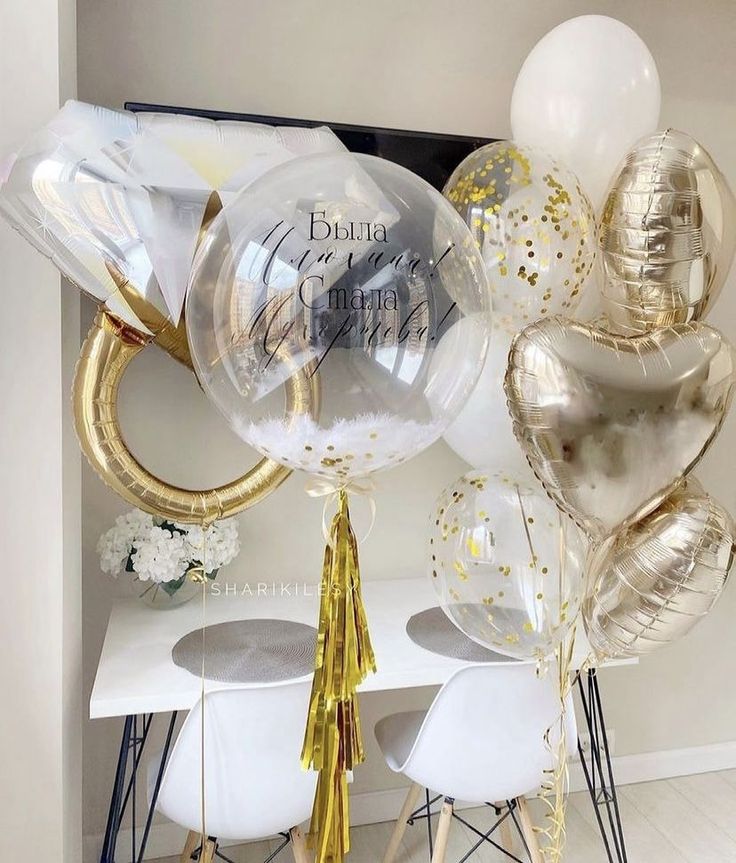 Personalised Clear with Feather and Customize Sticker, Engagement Gold Diamond Ring and Helium Bunch Gold and White Heart-Shaped and Latex - Bridal Shower Perfect for Special Occasions!