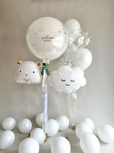 Personalised Clear with White Latex, Confetti, Ribbon and Sticker, Latex White and Clear with Confetti Balloons Bunch, White Clouds Foil Helium, Bunny Foil Helium and Floor Balloons - Baby Shower, Perfect for special occasions!