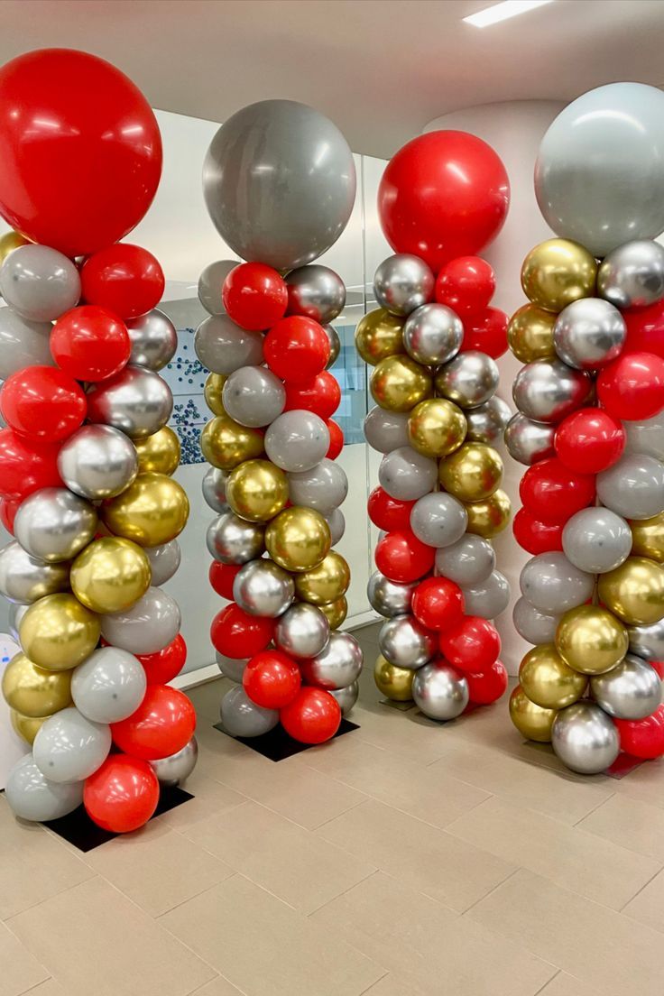 Personalised Company Logo Sticker Balloon Gray, Gold, White and Red Pillar/Column/Tower - Corporate Event, Grand Opening, Company Event Perfect for special occasion!