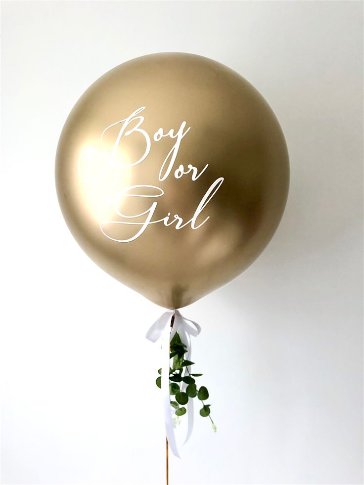 Personalised Gender Reveal Helium Balloon Light Gold Latex with Customize Sticker, Ribbons and Artificial Leaves - Customizable Design
