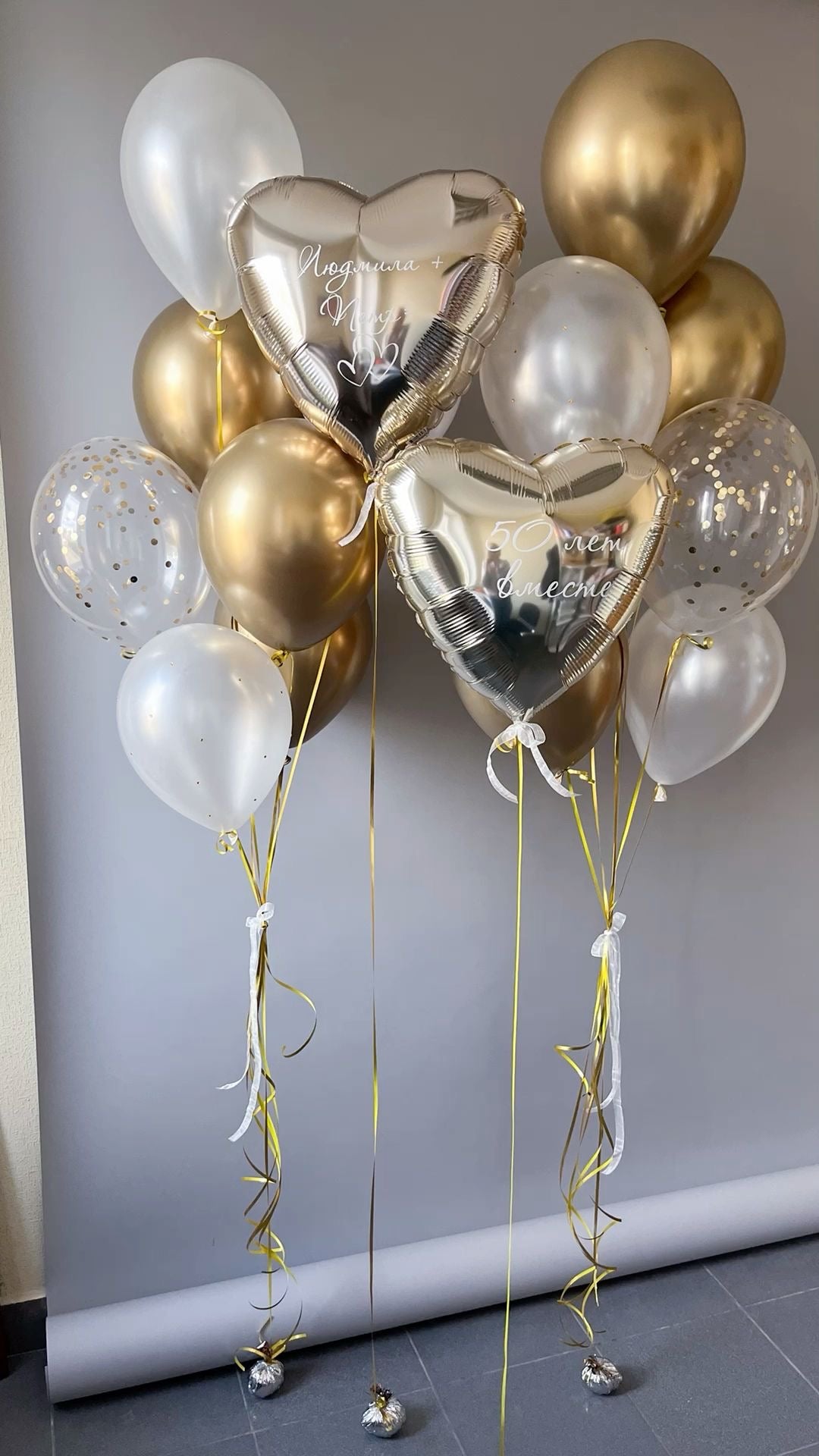 Personalised Helium Balloon Clear with Gold&Pearl White Latex, Heart-Shaped Helium, Customizable Sticker and Tassels - Perfect for any Occasions